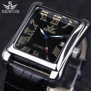 Jual Mens Watches Sewor Automatic Mechanical Watch Leather Strap Calendar Male Clock Vintage Wrist Watch Shopee Indonesia